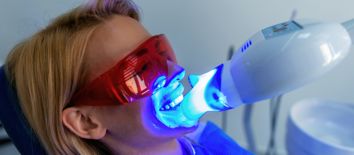 - In-Office Whitening: An expert-grade whitening gel is used to your teeth during in-office teeth whitening. It is possible to activate the gel and accelerate the whitening process using a laser or specialized light. This approach often yields fast outcomes.